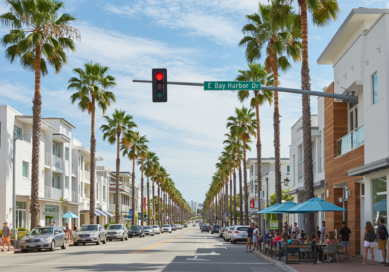 The East Island is the higher density residential (+/- 2800 residential units) and commercial zone with local shopping, restaurants, hotels, medical and office buildings, Ruth K Broad School campus, as well as city government and services.
